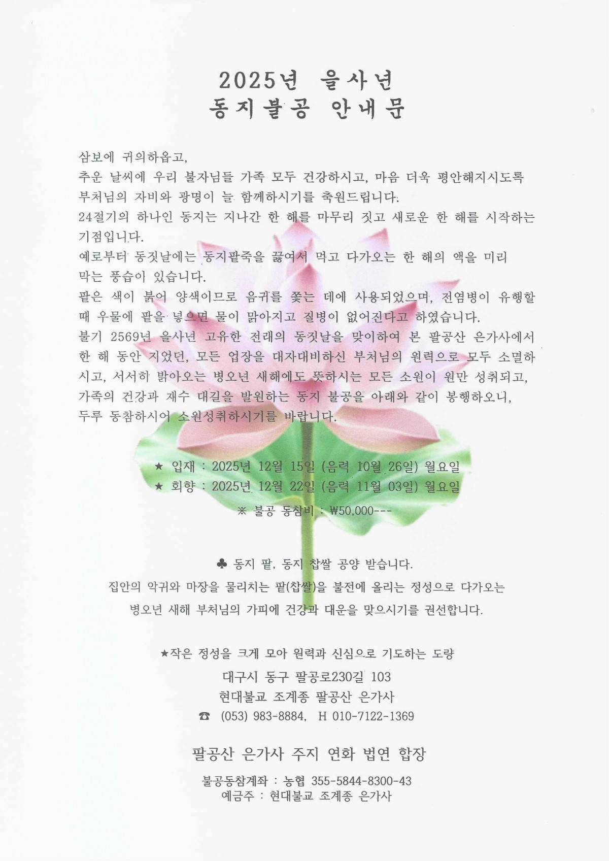 올해 동지가 다가오면 따뜻한 팥죽 한 그릇과 함께 한 해의 마지막을 잘 마무리하고, 다가올 새해를 준비해 보시기 바랍니다.